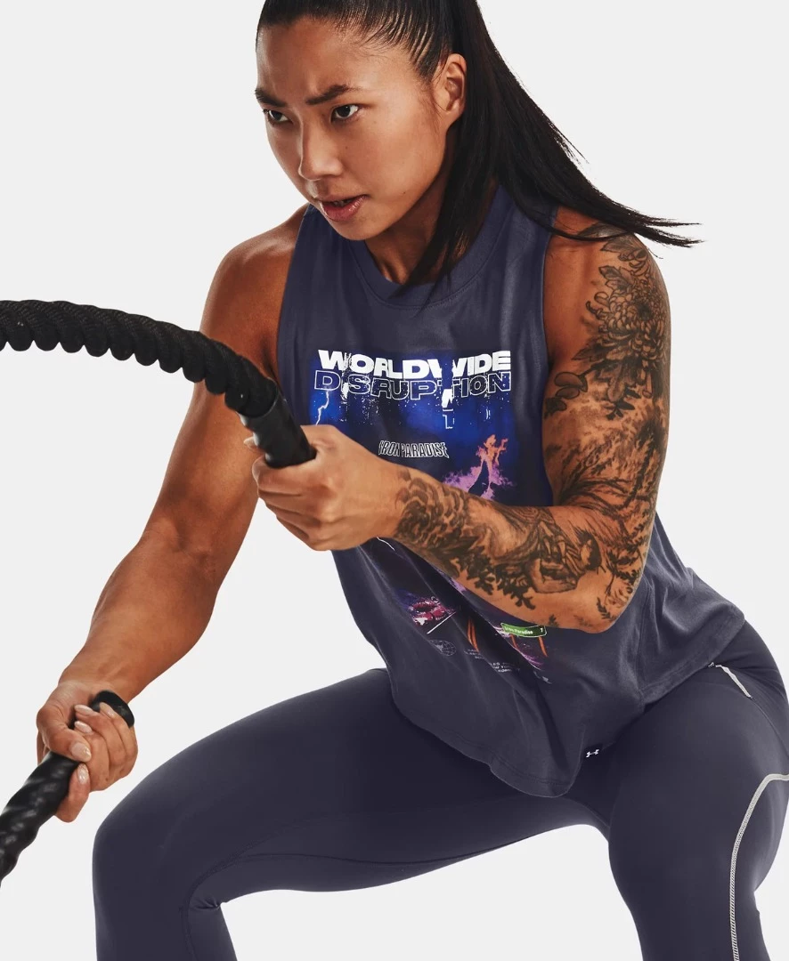 Γυναικεία Αμάνικη Μπλούζα UNDER ARMOUR PROJECT ROCK WORLDWIDE TANK Ανθρακί