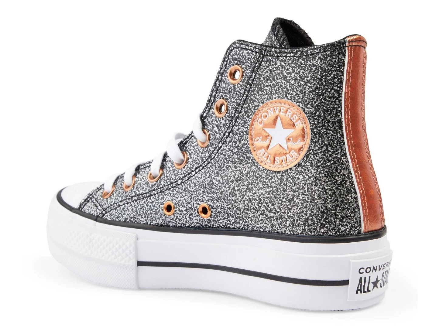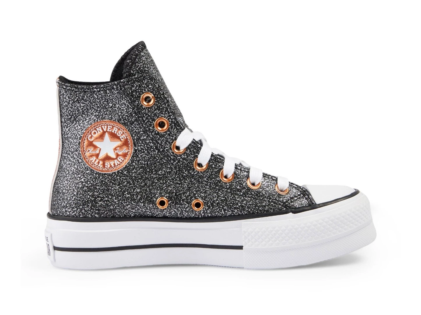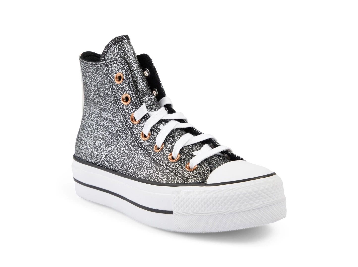 Δώσε ένα μοντέρνο χαρακτήρα στο urban style σου, με τα γυναικεία παπούτσια Converse Chuck Taylor All Star Lift Platform. Τα sneakers, για γυναίκες, διαθέτουν ανθεκτικό άνω μέρος από καμβά με επικάλυψη glitter. Απόλαυσε την αντικραδασμική προστασία OrthoLite και κέρδισε τις εντυπώσεις.