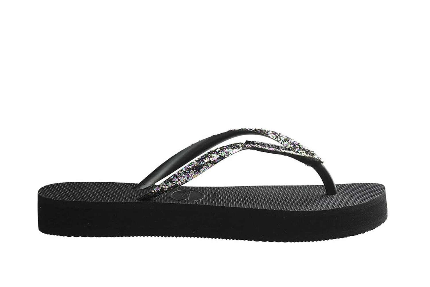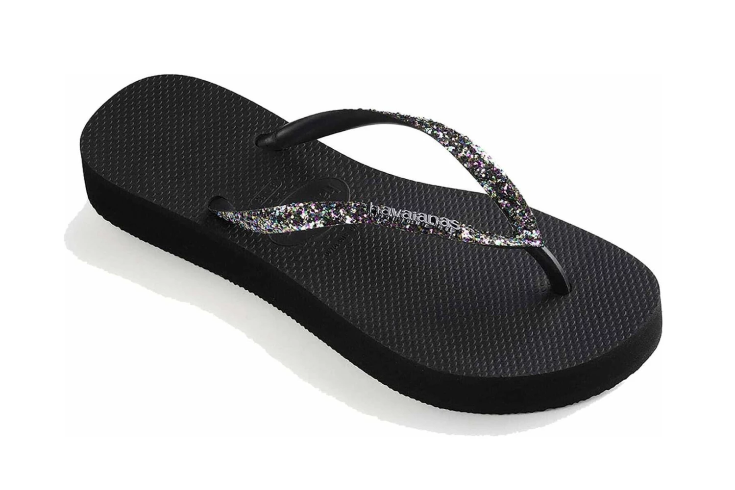 HAVAIANAS SLIM FLATFORM GLITTER 4144764-0090 Μαύρο
