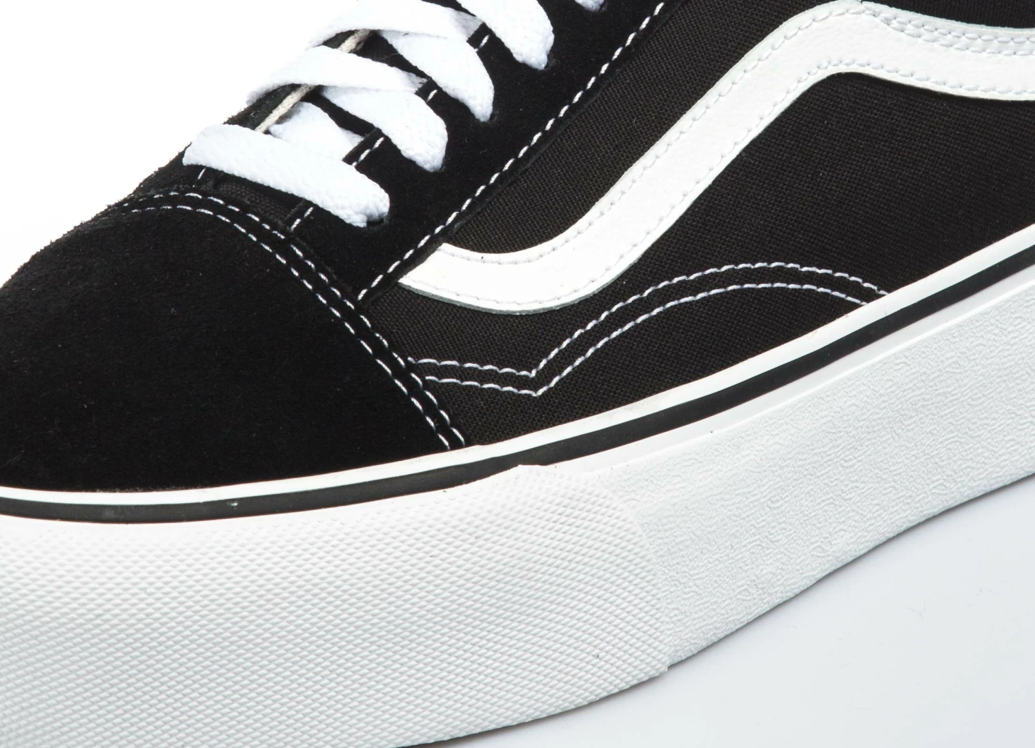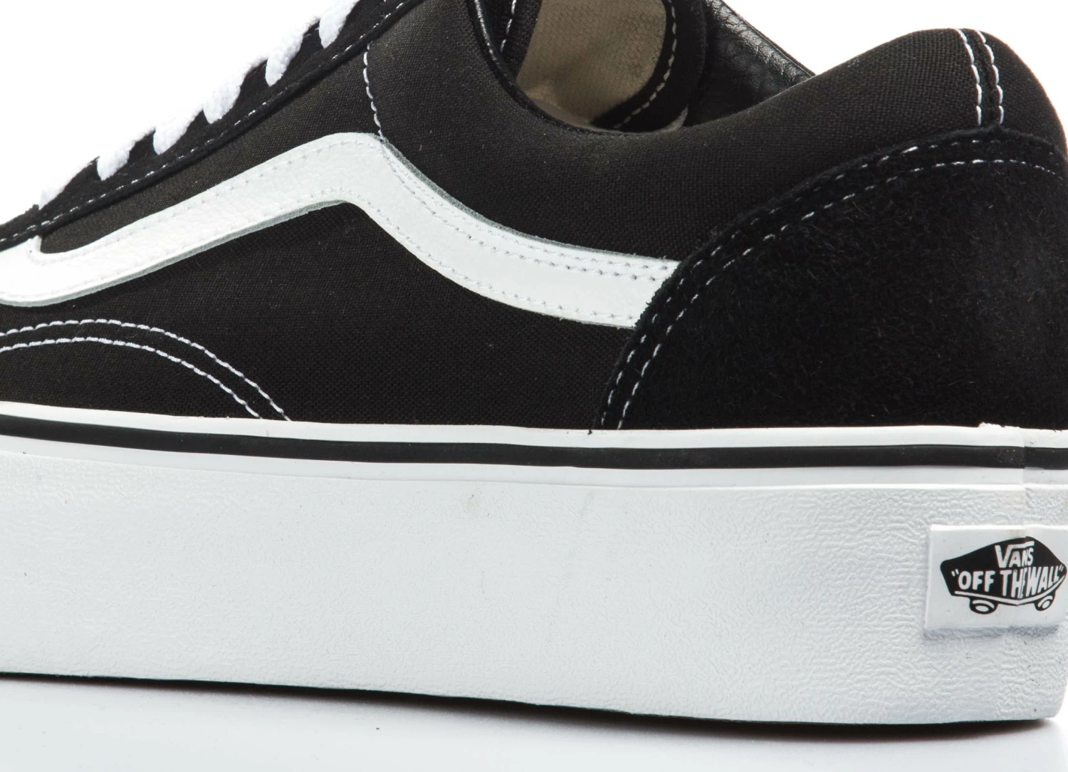 Τα παπούτσια Vans Old Skool Platform συνδυάζουν το κλασικό σχέδιο με καμβά και καστόρι στο πάνω μέρος, ενισχυμένο τμήμα στα δάχτυλα, μαλακή ενίσχυση στο κολάρο και εξωτερική σόλα από καουτσούκ με μοτίβο waffle.